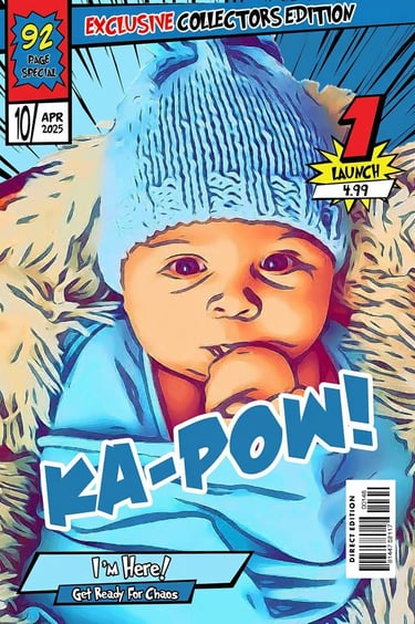 Step into the spotlight and become the hero of your own story. Our Personalised Comic Book Covers transform your photo into a bold, action-packed design worthy of a KA-POW! magazine front page — complete with your name, title, and custom text.